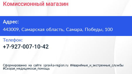 Комиссионный магазин по адресу 443009, Самарская область, Самара, Победы, 100 в дальнейшем Организация, размещена в следующих категориях: