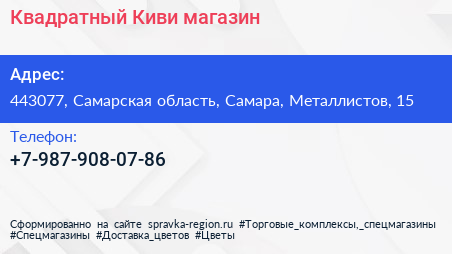 Квадратный Киви, магазин по адресу 443077, Самарская область, Самара, Металлистов, 15 в дальнейшем Организация, размещена в следующих категориях: