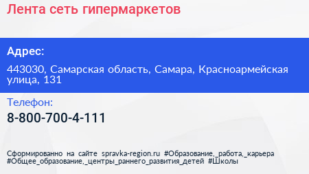 Лента, сеть гипермаркетов по адресу 443030, Самарская область, Самара, Красноармейская улица, 131 в дальнейшем Организация, размещена в следующих категориях: