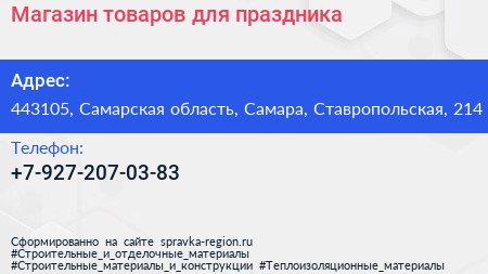 Магазин товаров для праздника по адресу 443105, Самарская область, Самара, Ставропольская, 214 в дальнейшем Организация, размещена в следующих категориях: