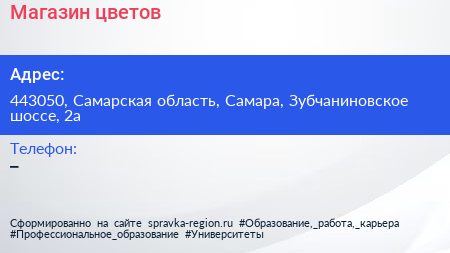 Магазин цветов по адресу 443050, Самарская область, Самара, Зубчаниновское шоссе, 2а в дальнейшем Организация, размещена в следующих категориях: