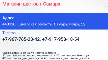 Магазин цветов, г. Самара по адресу 443028, Самарская область, Самара, Мира, 12 в дальнейшем Организация, размещена в следующих категориях: