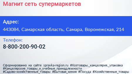 Магнит, сеть супермаркетов по адресу 443084, Самарская область, Самара, Воронежская, 214 в дальнейшем Организация, размещена в следующих категориях: