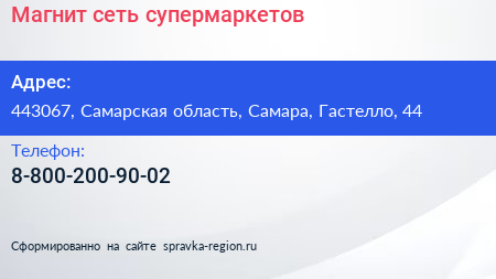 Магнит, сеть супермаркетов по адресу 443067, Самарская область, Самара, Гастелло, 44 в дальнейшем Организация, размещена в следующих категориях: