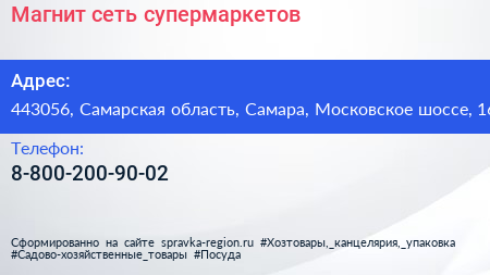 Магнит, сеть супермаркетов по адресу 443056, Самарская область, Самара, Московское шоссе, 16 в дальнейшем Организация, размещена в следующих категориях:
