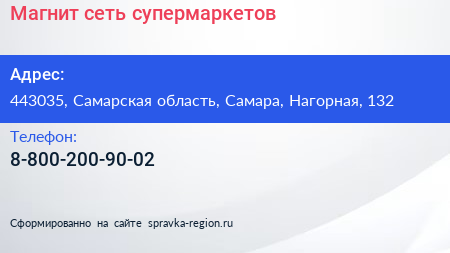 Магнит, сеть супермаркетов по адресу 443035, Самарская область, Самара, Нагорная, 132 в дальнейшем Организация, размещена в следующих категориях: