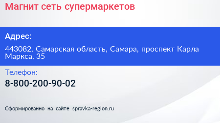 Магнит, сеть супермаркетов по адресу 443082, Самарская область, Самара, проспект Карла Маркса, 35 в дальнейшем Организация, размещена в следующих категориях: