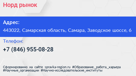 Норд, рынок по адресу 443022, Самарская область, Самара, Заводское шоссе, 6 в дальнейшем Организация, размещена в следующих категориях: