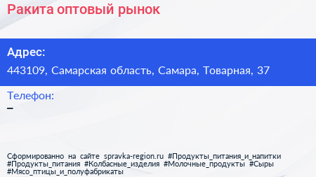 Ракита, оптовый рынок по адресу 443109, Самарская область, Самара, Товарная, 37 в дальнейшем Организация, размещена в следующих категориях: