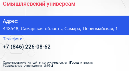 Смышляевский, универсам по адресу 443548, Самарская область, Самара, Первомайская, 1 в дальнейшем Организация, размещена в следующих категориях: