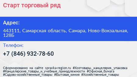 Старт, торговый ряд по адресу 443111, Самарская область, Самара, Ново-Вокзальная, 128Б в дальнейшем Организация, размещена в следующих категориях: