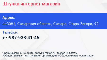 Штучка, интернет-магазин по адресу 443081, Самарская область, Самара, Стара-Загора, 92 в дальнейшем Организация, размещена в следующих категориях: