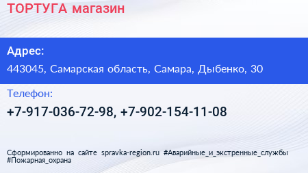 ТОРТУГА, магазин по адресу 443045, Самарская область, Самара, Дыбенко, 30 в дальнейшем Организация, размещена в следующих категориях:
