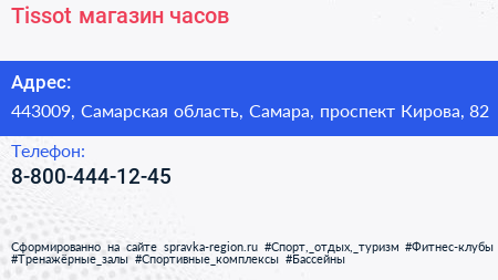 Tissot, магазин часов по адресу 443009, Самарская область, Самара, проспект Кирова, 82 в дальнейшем Организация, размещена в следующих категориях: