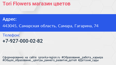 Tori Flowers, магазин цветов по адресу 443045, Самарская область, Самара, Гагарина, 74 в дальнейшем Организация, размещена в следующих категориях: