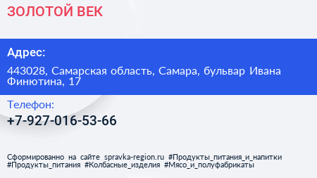 ЗОЛОТОЙ ВЕК по адресу 443028, Самарская область, Самара, бульвар Ивана Финютина, 17 в дальнейшем Организация, размещена в следующих категориях: