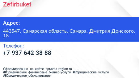 Zefirbuket по адресу 443547, Самарская область, Самара, Дмитрия Донского, 18 в дальнейшем Организация, размещена в следующих категориях: