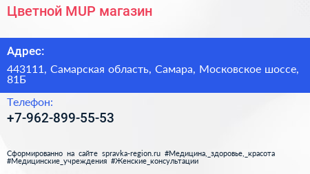 Цветной MUP, магазин по адресу 443111, Самарская область, Самара, Московское шоссе, 81Б в дальнейшем Организация, размещена в следующих категориях:
