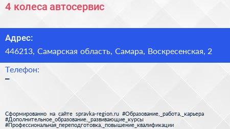 4 колеса, автосервис по адресу 446213, Самарская область, Самара, Воскресенская, 2 в дальнейшем Организация, размещена в следующих категориях: