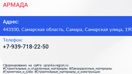АРМАДА по адресу 443100, Самарская область, Самара, Самарская улица, 190 в дальнейшем Организация, размещена в следующих категориях: