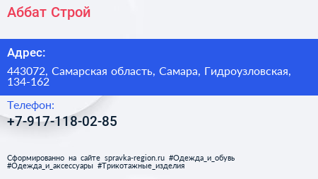 Аббат-Строй по адресу 443072, Самарская область, Самара, Гидроузловская, 134-162 в дальнейшем Организация, размещена в следующих категориях: