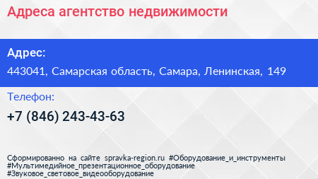 Адреса, агентство недвижимости по адресу 443041, Самарская область, Самара, Ленинская, 149 в дальнейшем Организация, размещена в следующих категориях: