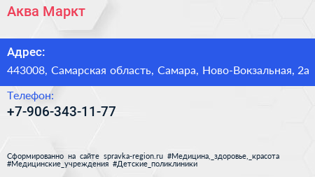 Аква Маркт по адресу 443008, Самарская область, Самара, Ново-Вокзальная, 2а в дальнейшем Организация, размещена в следующих категориях: