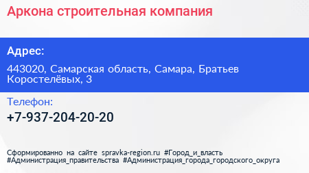 Аркона, строительная компания по адресу 443020, Самарская область, Самара, Братьев Коростелёвых, 3 в дальнейшем Организация, размещена в следующих категориях: