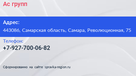 Ас-групп по адресу 443086, Самарская область, Самара, Революционная, 75 в дальнейшем Организация, размещена в следующих категориях: