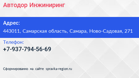 Автодор Инжиниринг по адресу 443011, Самарская область, Самара, Ново-Садовая, 271 в дальнейшем Организация, размещена в следующих категориях:
