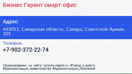 Бизнес-Гарант, смарт-офис по адресу 443011, Самарская область, Самара, Советской Армии, 201 в дальнейшем Организация, размещена в следующих категориях: