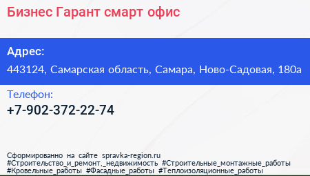 Бизнес-Гарант, смарт-офис по адресу 443124, Самарская область, Самара, Ново-Садовая, 180а в дальнейшем Организация, размещена в следующих категориях:
