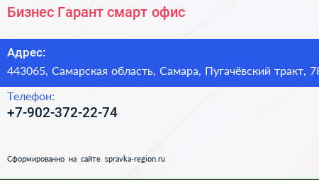 Бизнес-Гарант, смарт-офис по адресу 443065, Самарская область, Самара, Пугачёвский тракт, 78 в дальнейшем Организация, размещена в следующих категориях: