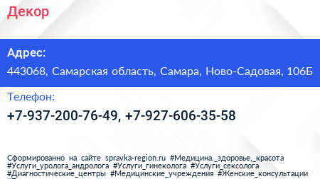 Декор по адресу 443068, Самарская область, Самара, Ново-Садовая, 106Б в дальнейшем Организация, размещена в следующих категориях: