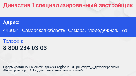 Династия-1, специализированный застройщик по адресу 443031, Самарская область, Самара, Молодёжная, 16а в дальнейшем Организация, размещена в следующих категориях: