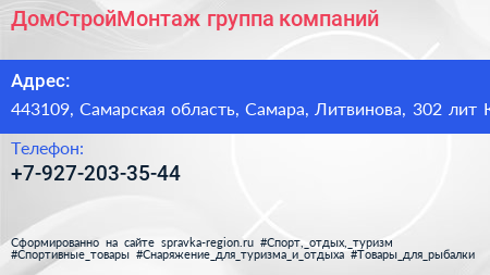 ДомСтройМонтаж, группа компаний по адресу 443109, Самарская область, Самара, Литвинова, 302 лит К в дальнейшем Организация, размещена в следующих категориях:
