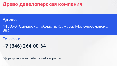 Древо, девелоперская компания по адресу 443070, Самарская область, Самара, Малоярославская, 88а в дальнейшем Организация, размещена в следующих категориях: