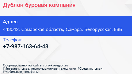 Дублон, буровая компания по адресу 443042, Самарская область, Самара, Белорусская, 88Б в дальнейшем Организация, размещена в следующих категориях: