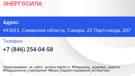ЭНЕРГОСИЛА по адресу 443011, Самарская область, Самара, 22 Партсъезда, 207 в дальнейшем Организация, размещена в следующих категориях: