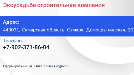 Экоусадьба, строительная компания по адресу 443031, Самарская область, Самара, Демократическая, 20 в дальнейшем Организация, размещена в следующих категориях: