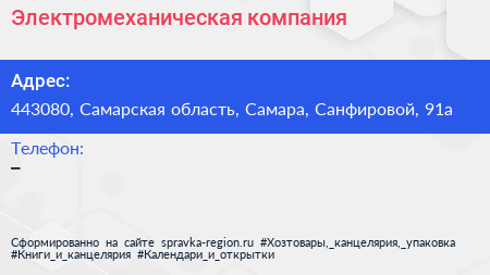 Электромеханическая компания по адресу 443080, Самарская область, Самара, Санфировой, 91а в дальнейшем Организация, размещена в следующих категориях: