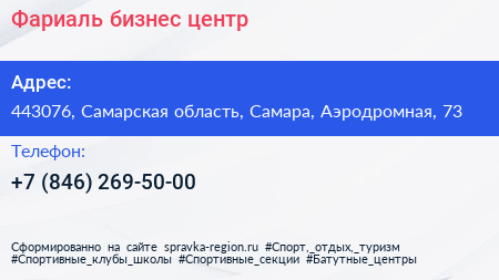 Фариаль, бизнес-центр по адресу 443076, Самарская область, Самара, Аэродромная, 73 в дальнейшем Организация, размещена в следующих категориях: