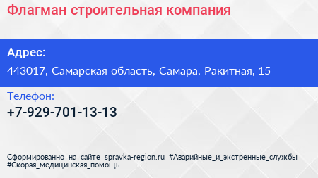 Флагман, строительная компания по адресу 443017, Самарская область, Самара, Ракитная, 15 в дальнейшем Организация, размещена в следующих категориях: