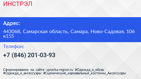 ИНСТРЭЛ по адресу 443068, Самарская область, Самара, Ново-Садовая, 106 к155 в дальнейшем Организация, размещена в следующих категориях: