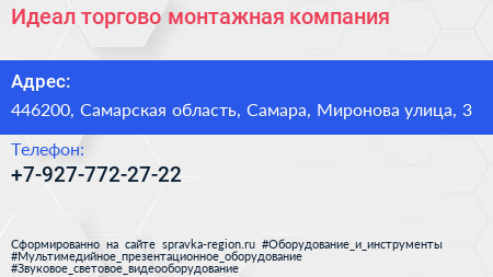 Идеал, торгово-монтажная компания по адресу 446200, Самарская область, Самара, Миронова улица, 3 в дальнейшем Организация, размещена в следующих категориях: