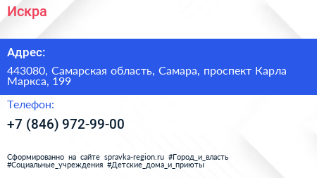 Искра по адресу 443080, Самарская область, Самара, проспект Карла Маркса, 199 в дальнейшем Организация, размещена в следующих категориях: