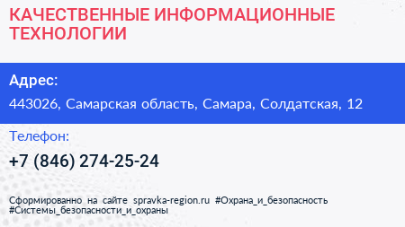 КАЧЕСТВЕННЫЕ ИНФОРМАЦИОННЫЕ ТЕХНОЛОГИИ по адресу 443026, Самарская область, Самара, Солдатская, 12 в дальнейшем Организация, размещена в следующих категориях: