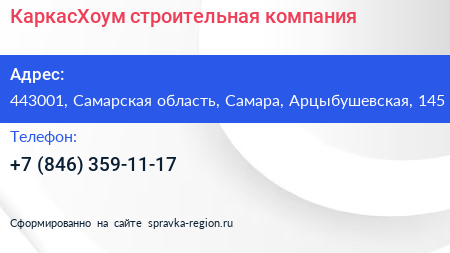 КаркасХоум, строительная компания по адресу 443001, Самарская область, Самара, Арцыбушевская, 145 в дальнейшем Организация, размещена в следующих категориях: