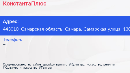 КонстантаПлюс по адресу 443010, Самарская область, Самара, Самарская улица, 130 в дальнейшем Организация, размещена в следующих категориях: