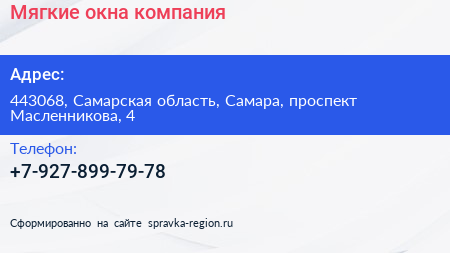 Мягкие окна, компания по адресу 443068, Самарская область, Самара, проспект Масленникова, 4 в дальнейшем Организация, размещена в следующих категориях: